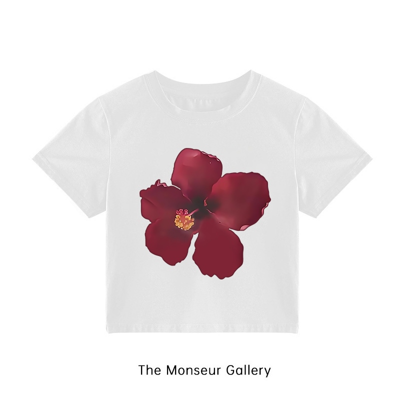 The Monseur Gallery Kaos Crop Wanita Slimfit Flower Design Hibiscus Orchid Kaos Crop Top Y2K Fashion | Baju Croptee Hita