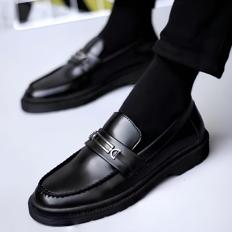 AERON Sepatu Pantofel Oxford Formal Docmart Kerja Hitam Pria - Kelra Black