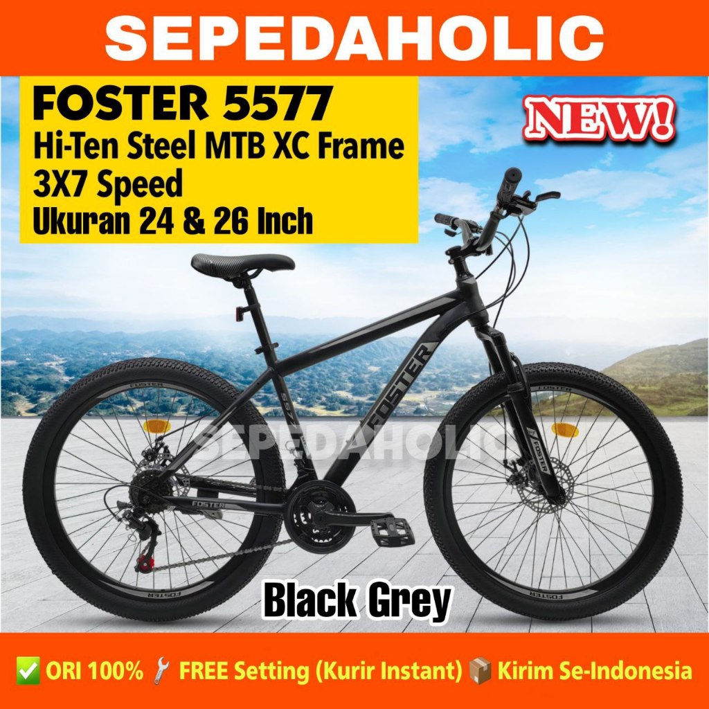 Sepeda Gunung MTB FOSTER 5577 Ukuran 24 26 Inch Dewasa Remaja Rem Cakram 21 Speed