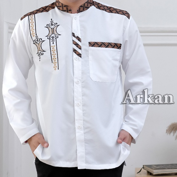 Baju Kemeja Koko Pria Dewasa Lengan Panjang Koko Bordil Kombinasi Batik M L XL XXL