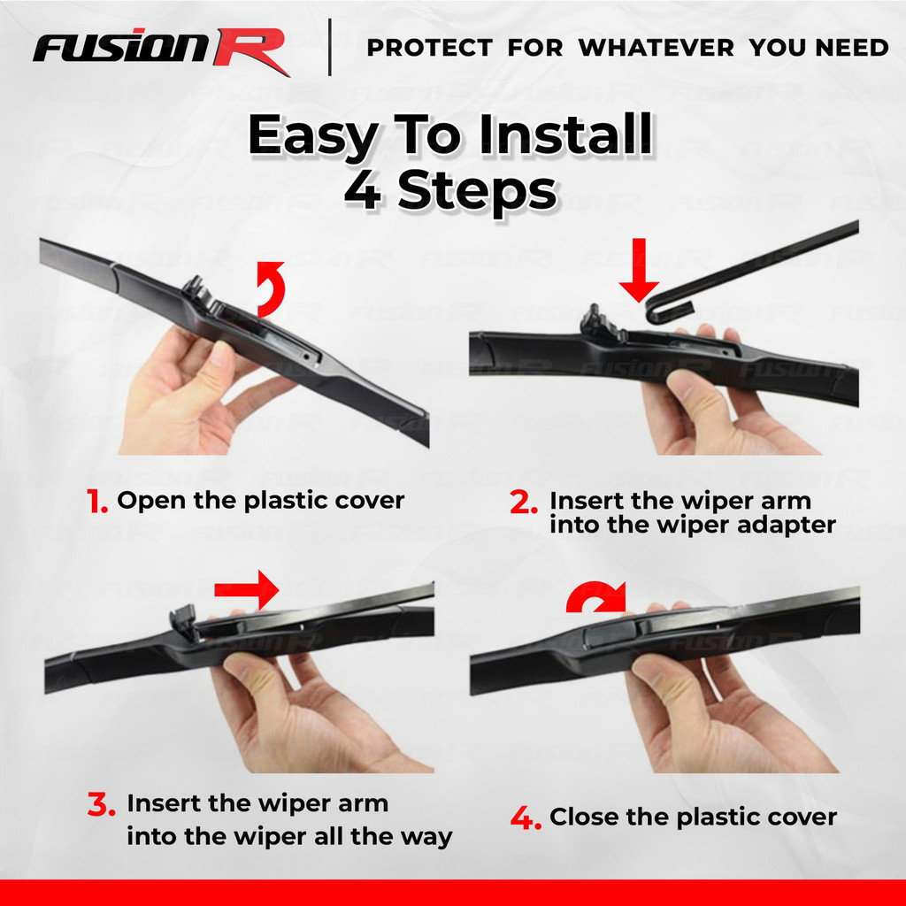 Fusion R | Wiper Kaca Mobil Sepasang ( Paket isi 2 ) Wiper Karet Frameless Hybrid Blade Premium Set