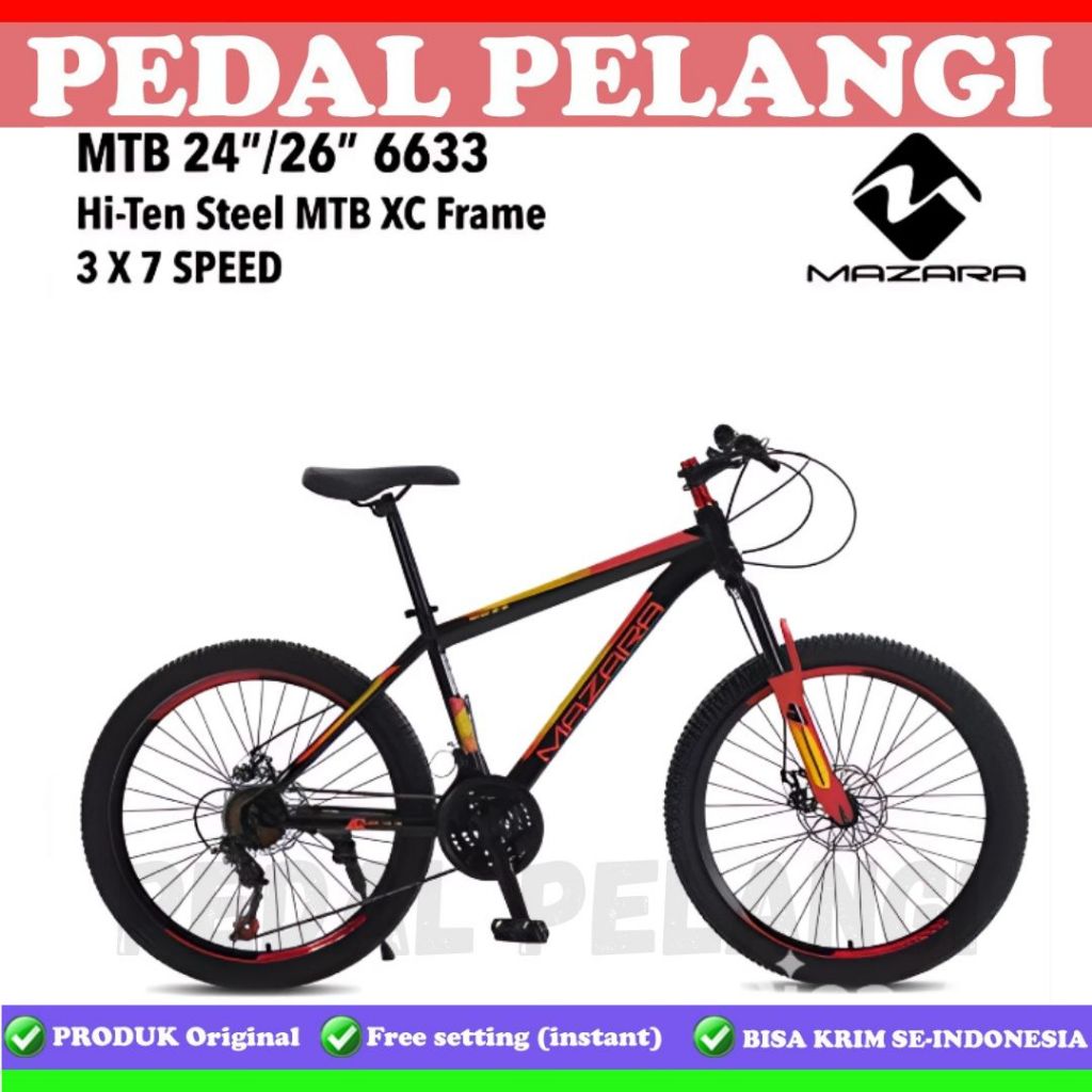 Sepeda Gunung MTB MAZARA 6633 Ukuran 24 26 Inch Rem Cakram 21 Speed Shockbreaker Depan
