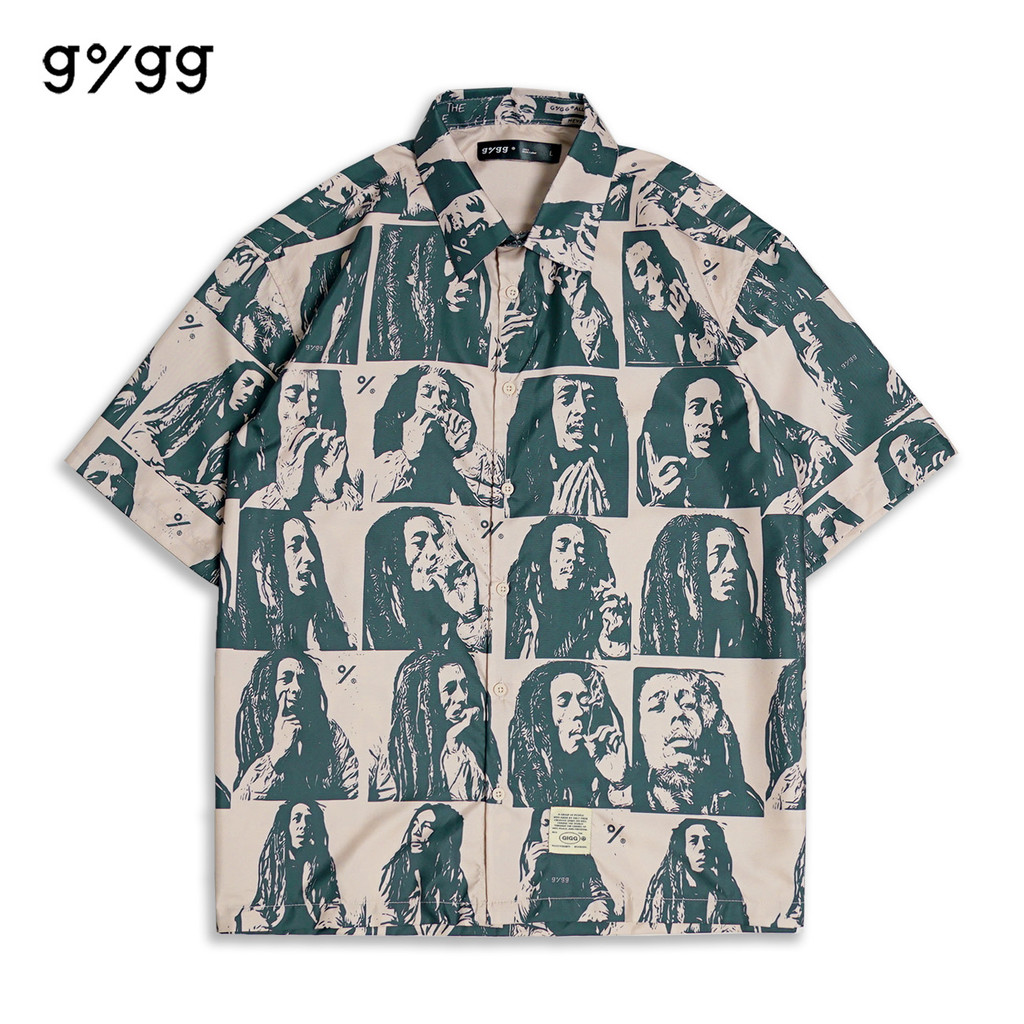 GIGG - Portrait - Cream Oversize Shirt - Kemeja Lengan Pendek Bob Marley - Baju Cowok - Atasan Pria