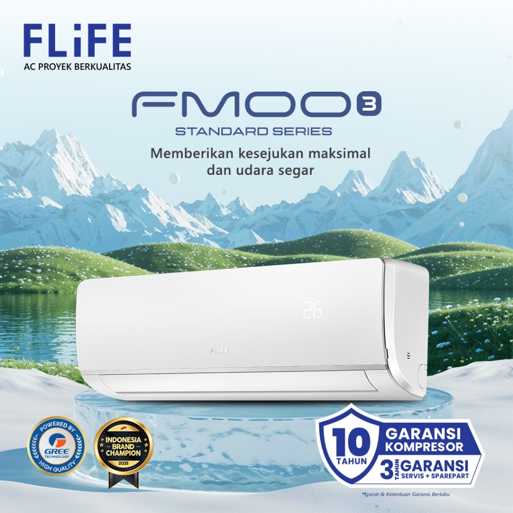 FLIFE AC 1/2 PK Standard - Turbo Mode - Gold Fin Anti Korosi - Fitur Dehumidifier - FAC-05FMOO3