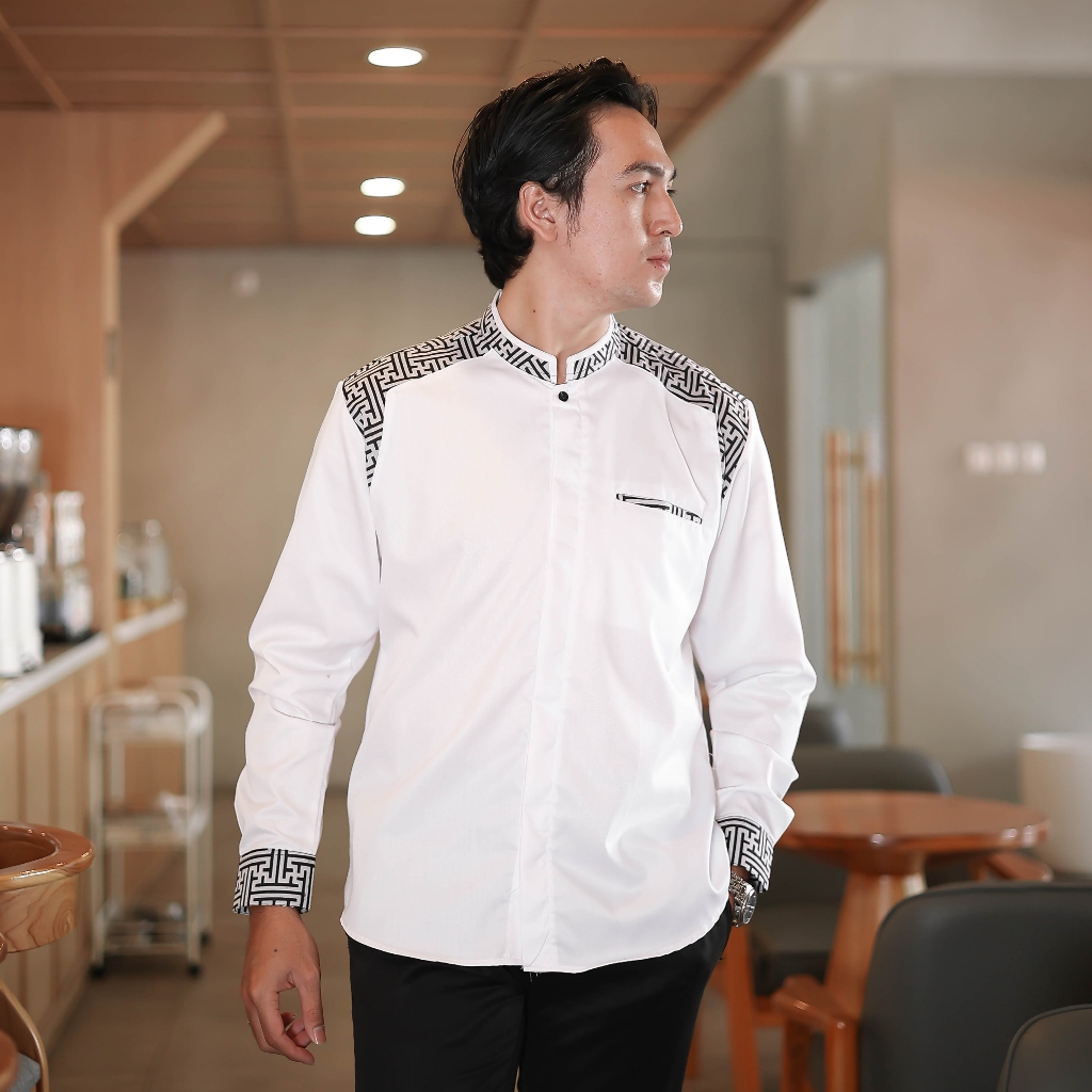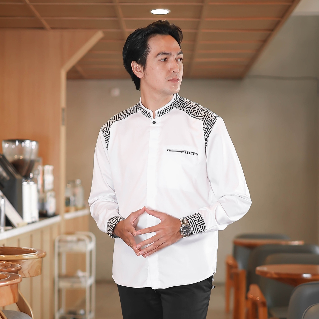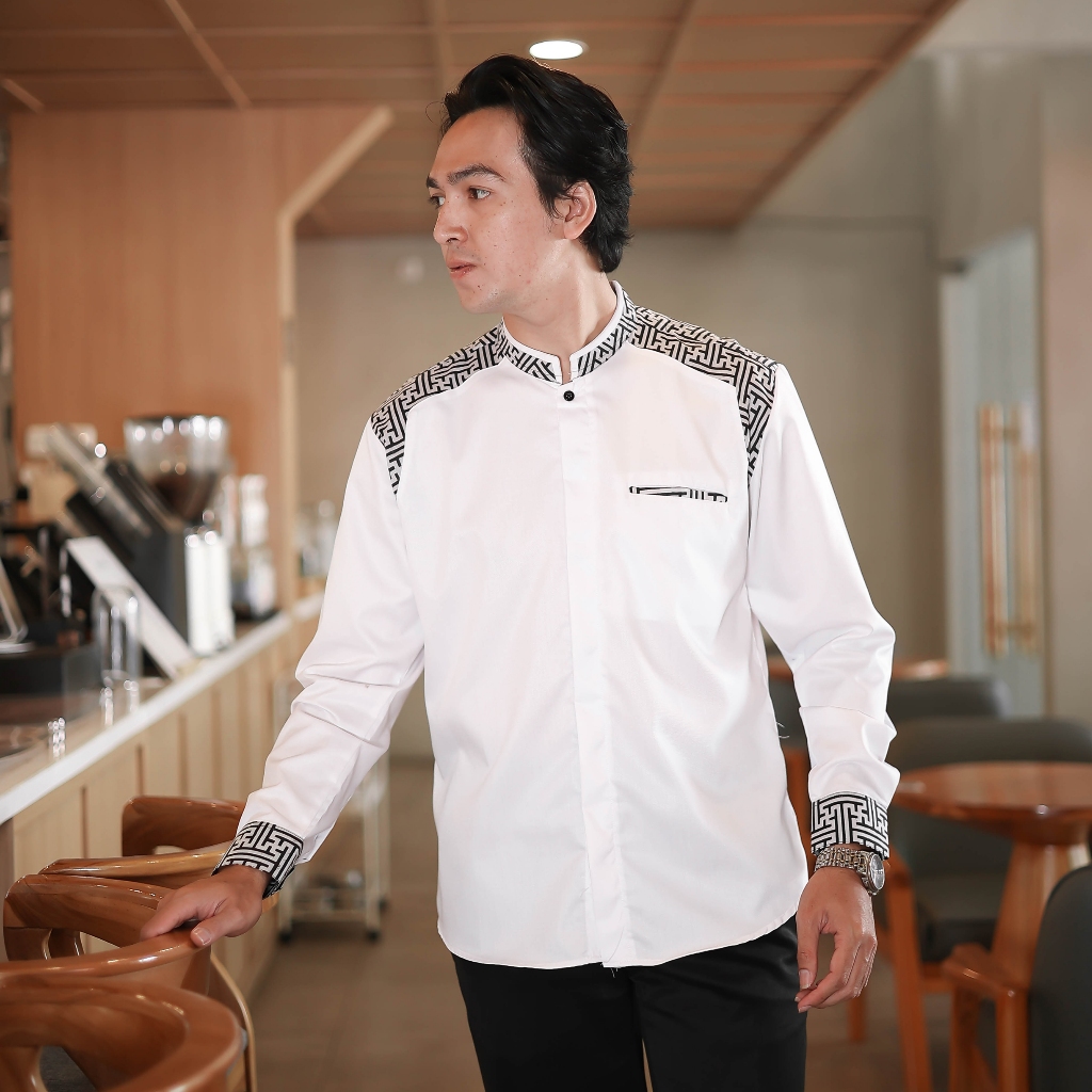 Baju Koko Pria Elrumi Lengan Panjang Motif Araseo Warna Putih