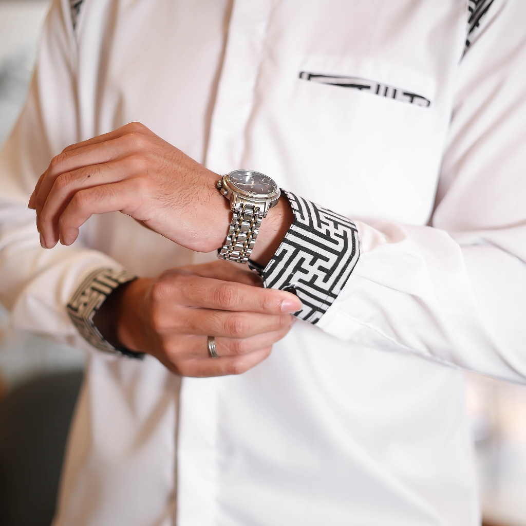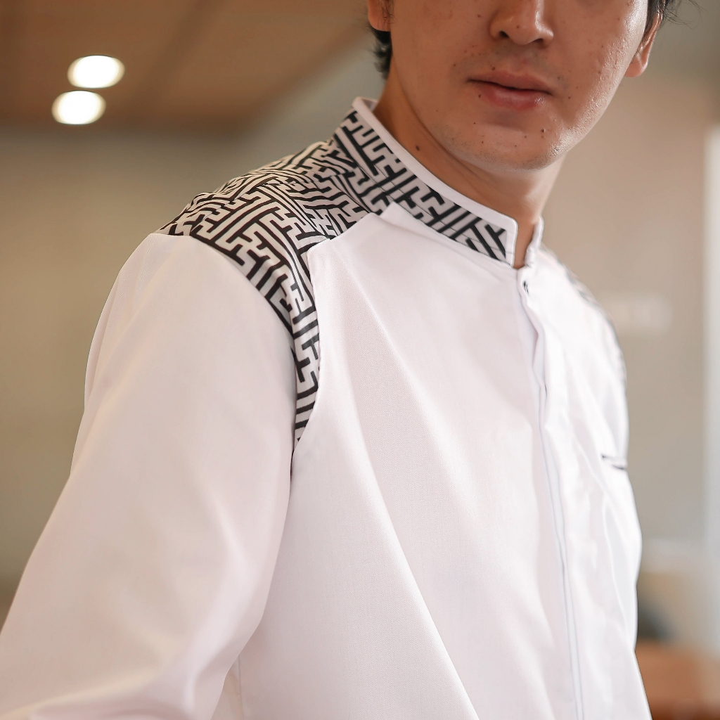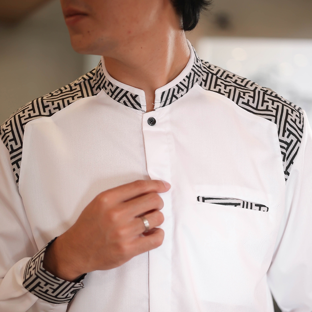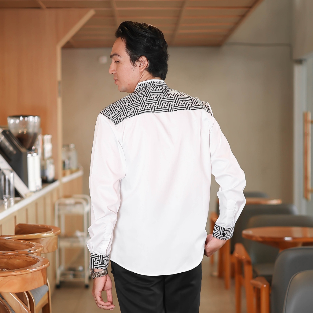 Baju Koko Pria Elrumi Lengan Panjang Motif Araseo Warna Putih