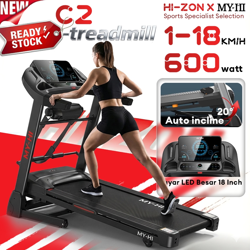 HI-ZON /Treadmill Portable C2 Kemiringan otomatis incline Dasbor digital Treadmill electric low watt