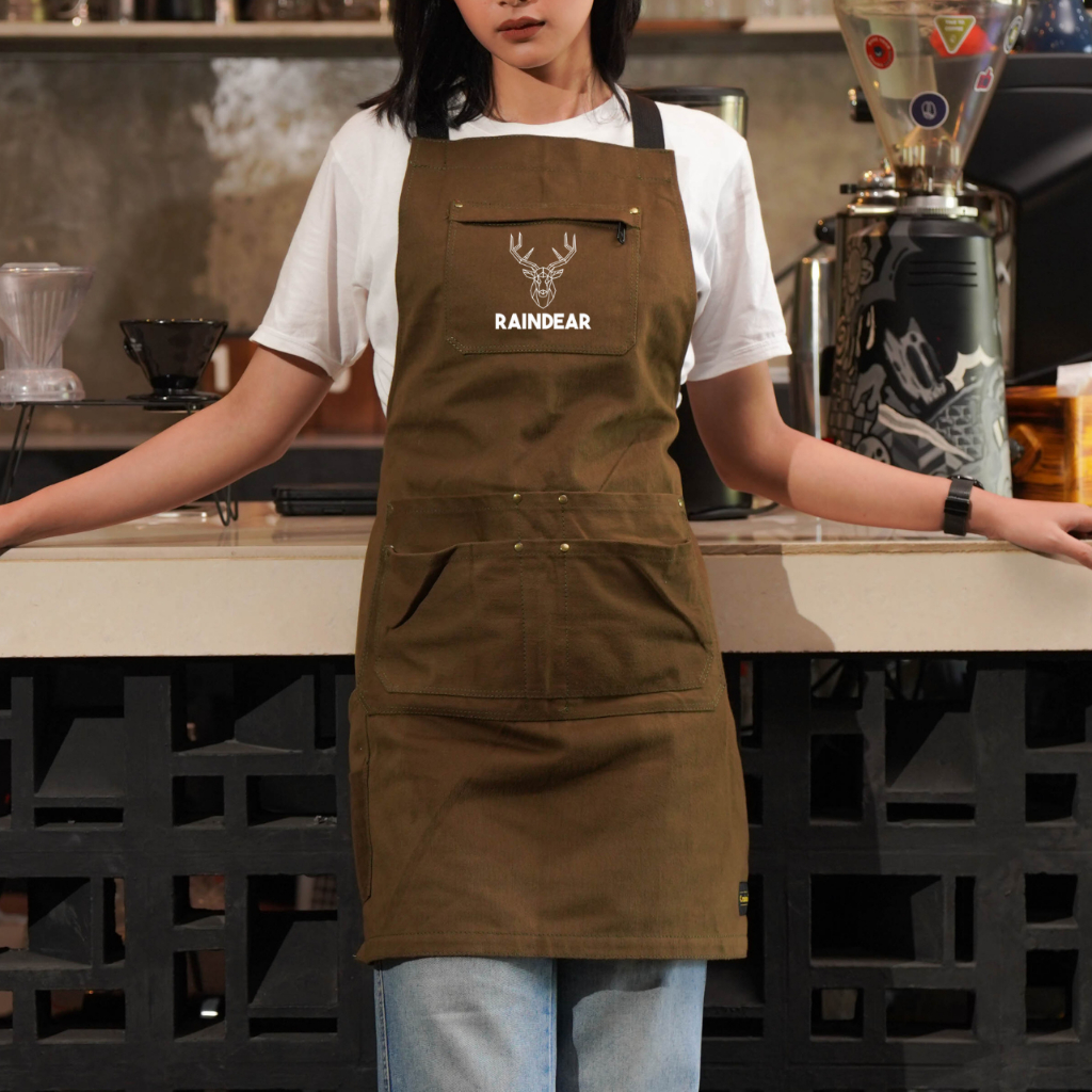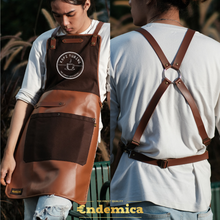 apron barista celemek barbershop celemek koki masak kombinasi kanvas tebal dan premium syntethic leather