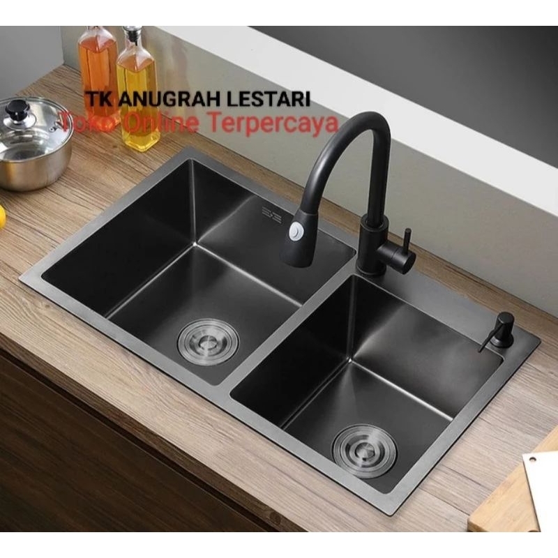 Paket Lengkap Kitchen Sink 8245 BLACK/SILVER Paket Kran Tarik Stainless 304