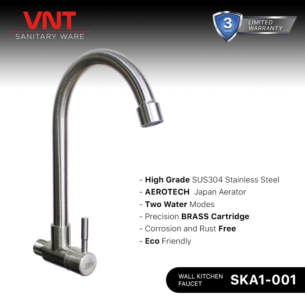 VNT Keran Cuci Piring Leher Angsa Stainless SKA1-001 Kran Air Sink Dapur Tembok