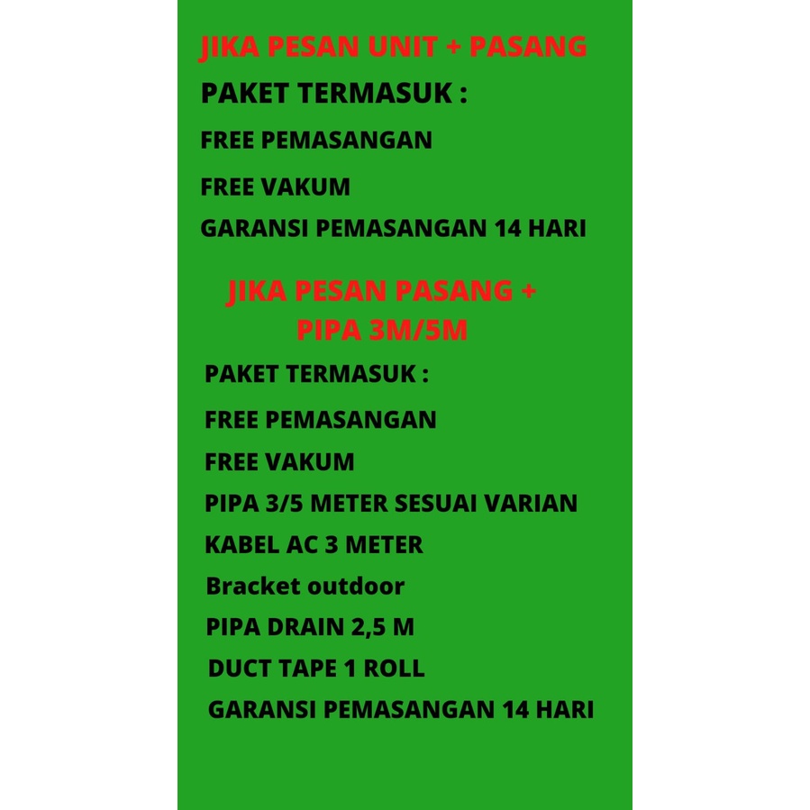 UNIT ONLY, UNIT + PASANG, PASANG + PIPA 3METER, PASANG + PIPA 5METER, PASANG PIPA 6METER, PASANG PIPA 7 METER, PASANG PIPA 8 METER, PASANG PIPA 9 METER, PASANG PIPA 10 METER