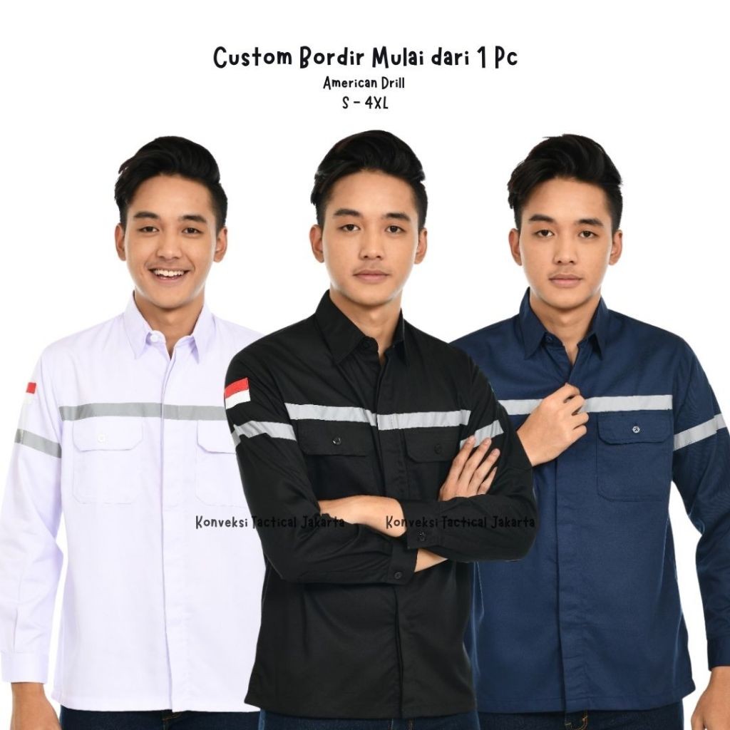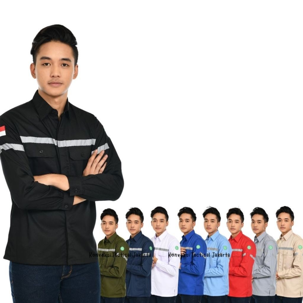 Baju Kemeja Atasan Safety K3 Wearpack Proyek Tambang Scotlight Lengan Panjang Seragam Kerja Lapangan Pria Wanita Bisa Bordir Satuan Bahan American Drill - Warna Hitam