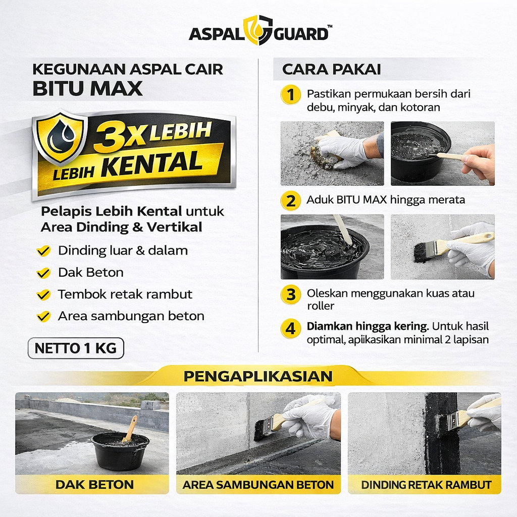Bitmax Aspal Cair Bitumen 1 Kg Super Kental Untuk Plafon,Dinding Dll