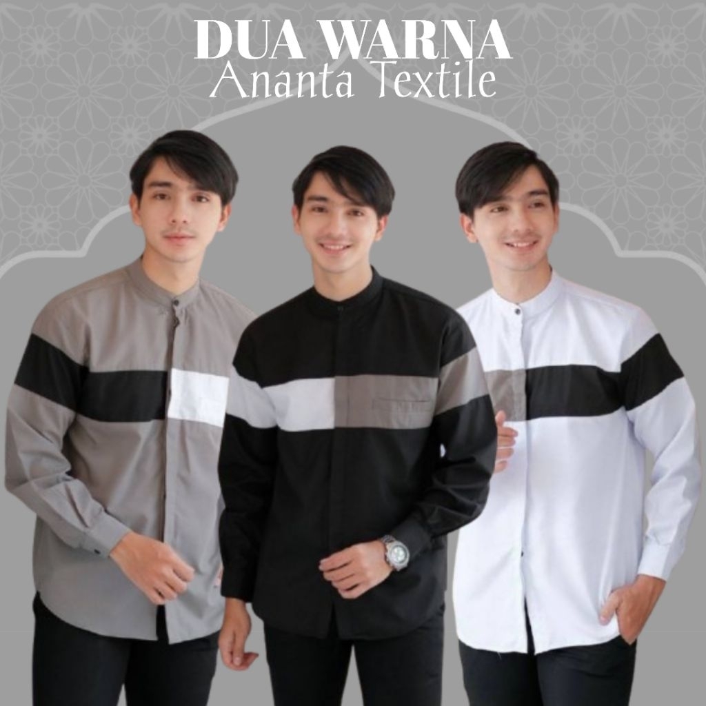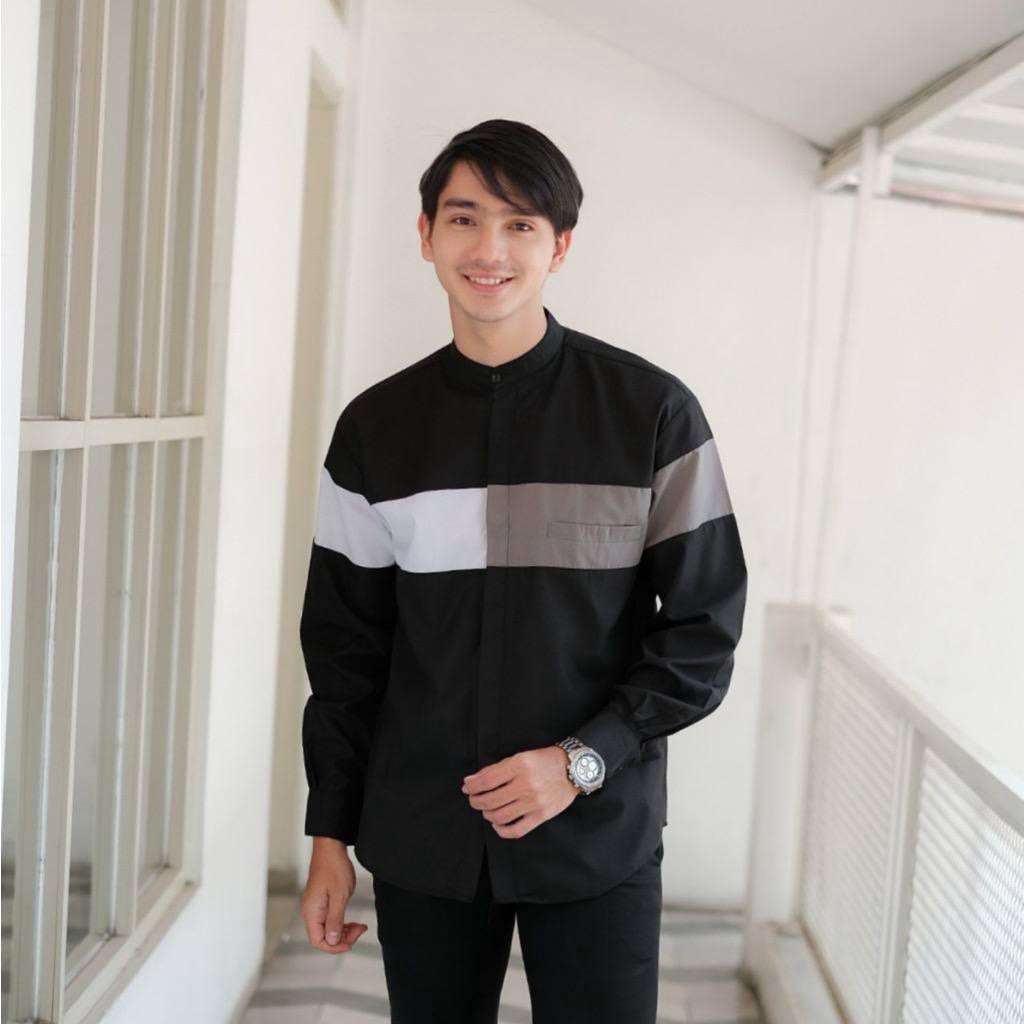 Baju Koko Pria Dewasa Kombinasi Dada Motif Dua Warna Lengan Panjang Size M L XL XXL
