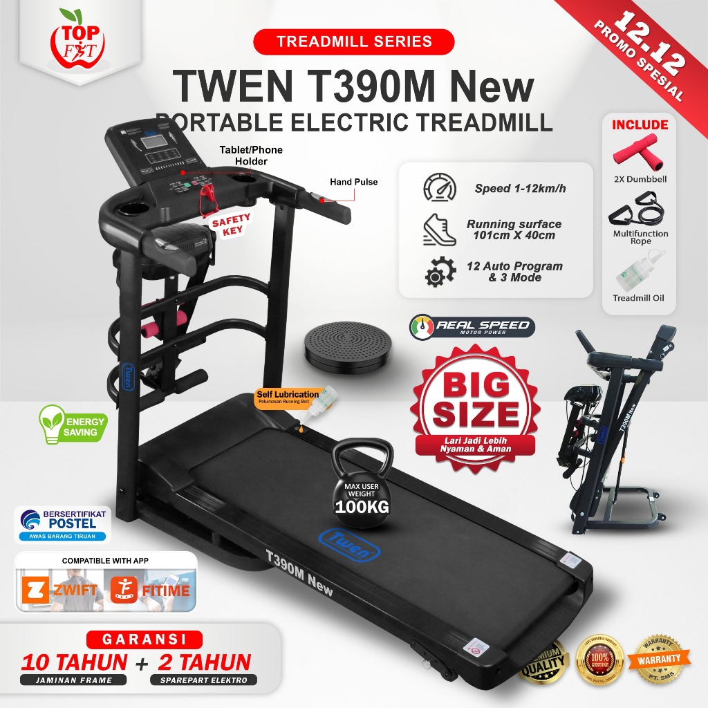 TWEN T309M T390M Treadmill Listrik Treadmill Portable Treadmill Multifungsi Treadmil Lipat Treadmill Electric Low Watt Alat Olahraga