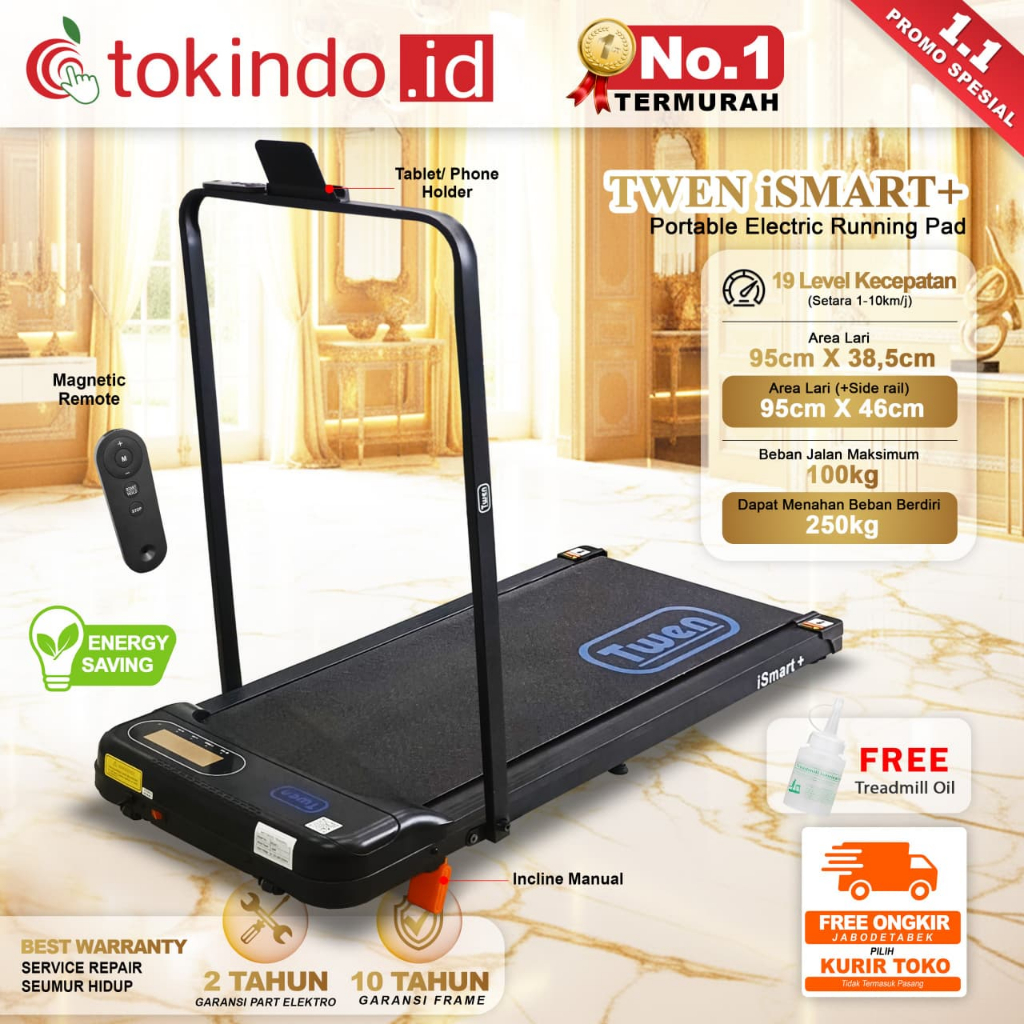 TWEN iSmart+ iSmart Plus Treadmill Elektrik Treadmill Portable Walking Pad Running Pad Alat Olahraga