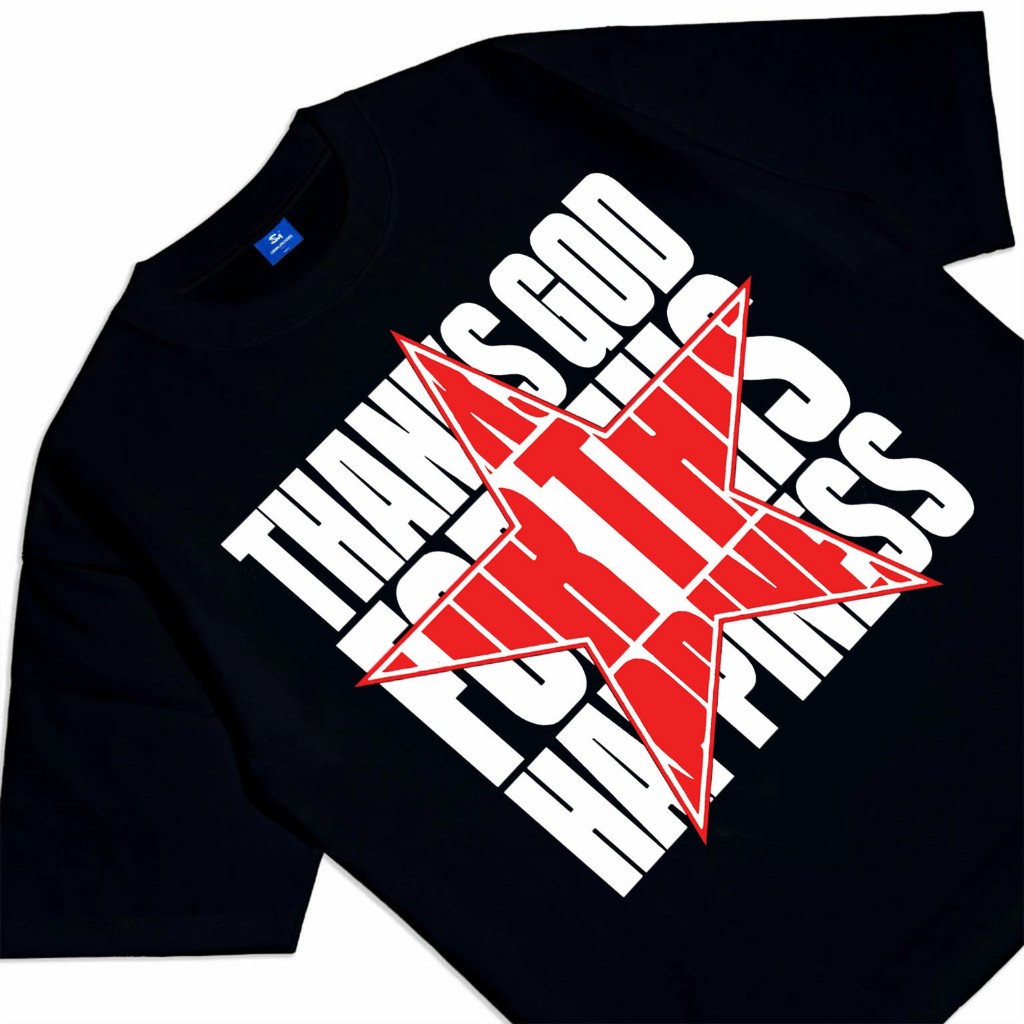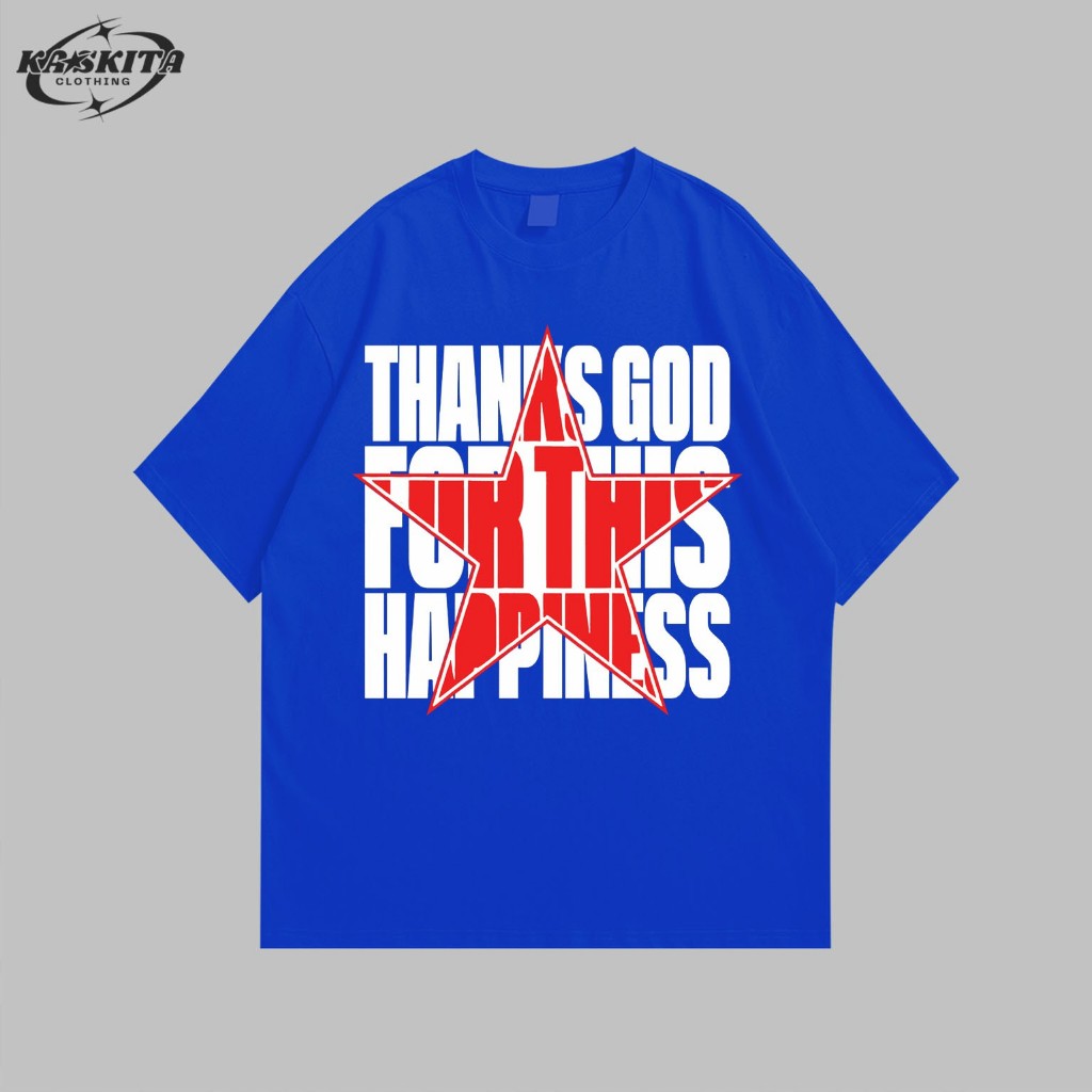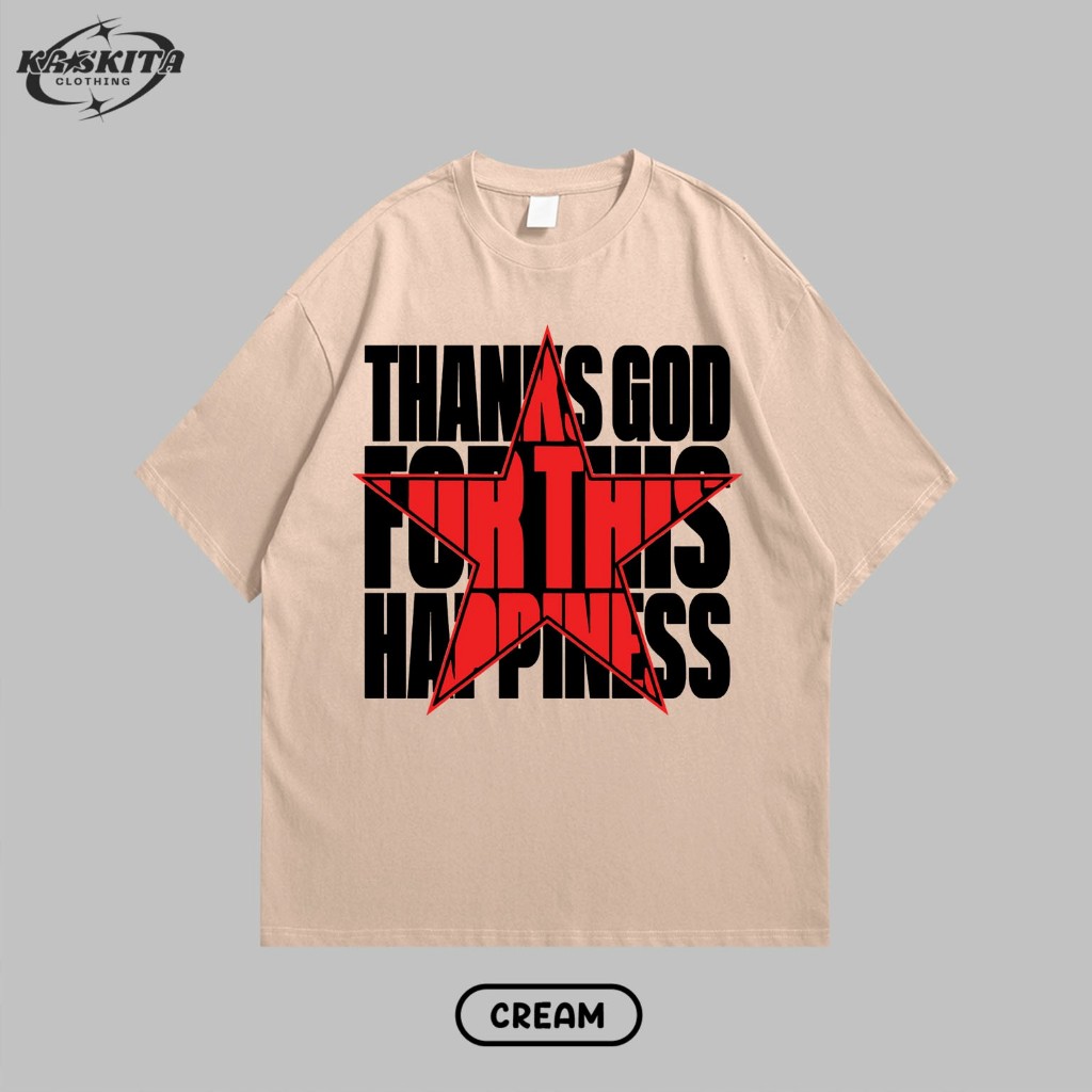 Tshirt THANKS GOD FOR THIS HAPPINESS Vintage lengan pendek Kaos Hitam Putih Unisex Keren Nyaman Cotton Combed