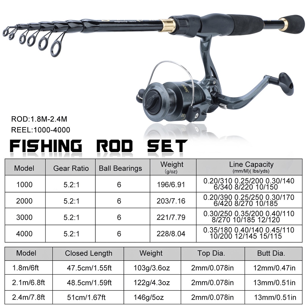 Sougayilang Joran Pancing Set Batang Berputar Dengan Tubuh Karbon Dan 6 BB Rasio Roda Gigi Tinggi 5.2:1 Set Reel Berputa