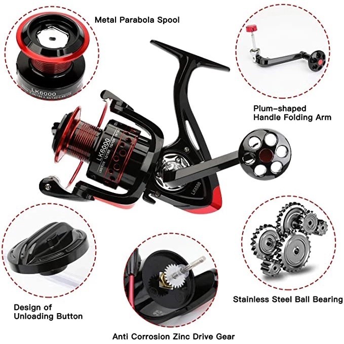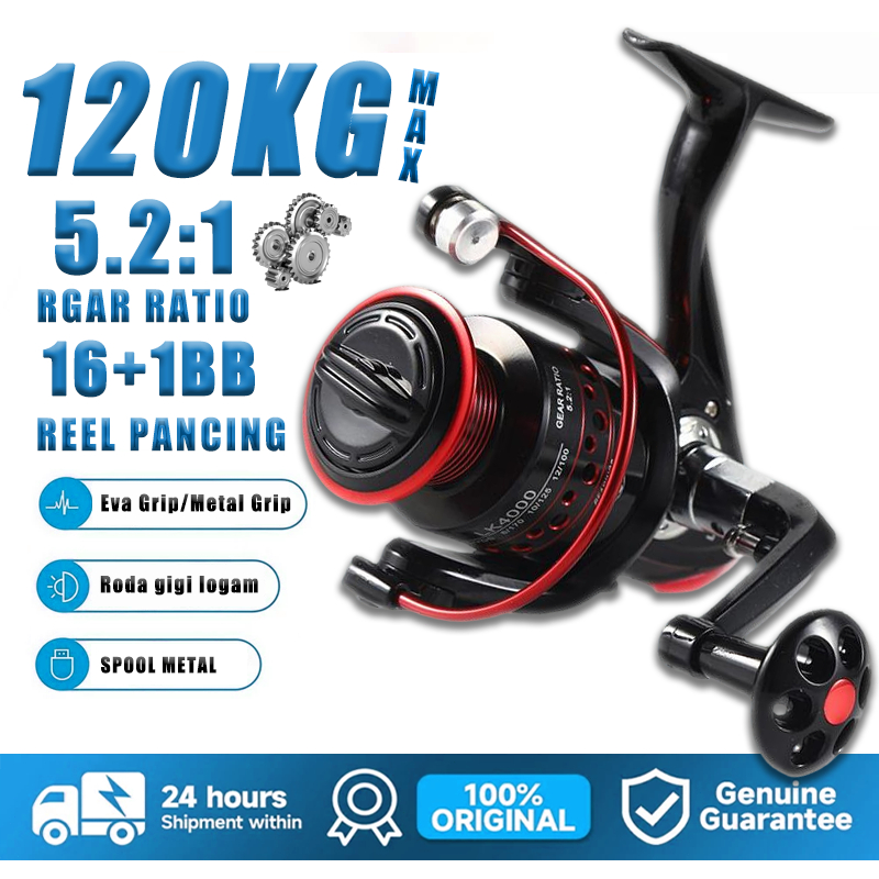 Asli Besi Reel Pancing LK2000-7000 Max Drag 120KG dengan Kekuatan Rem Hingga Spinning Rod Reel