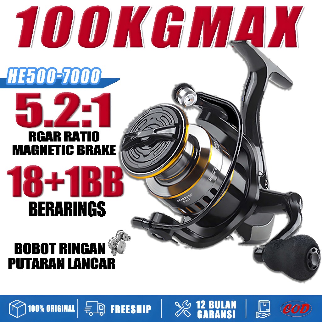 Asli Besi Reel pancing he500-7000 Max Drag 100Kg Fishing Reel 5.2:1