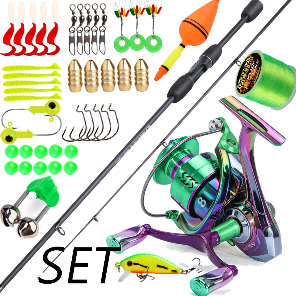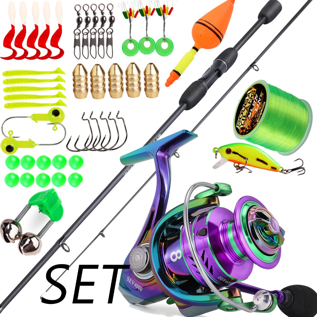 Full Joran Pancing Set Sougayilang 2 Sections 1.8m Carbon Fiber Fishing Rod with 5.0:1 High Speed 1000-5000 Series Fishi
