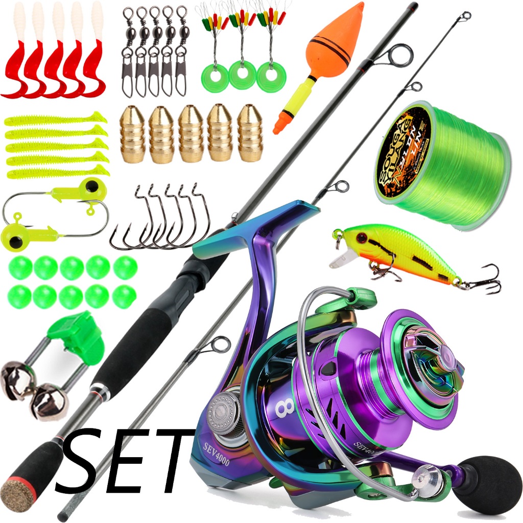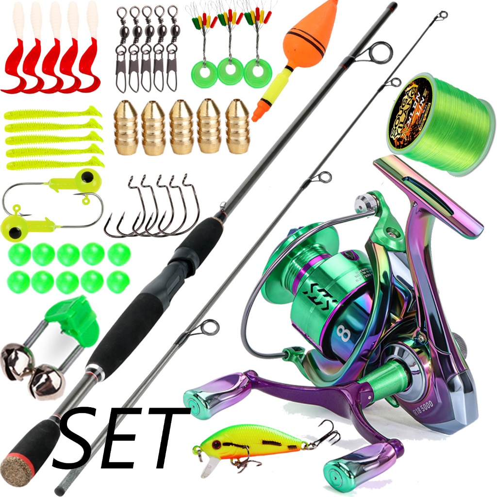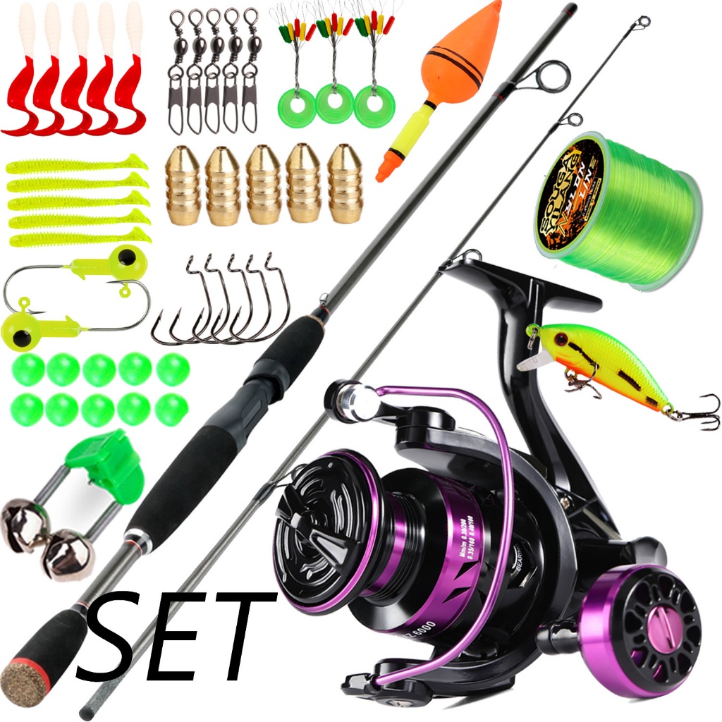 2 Sections Set Pancing Spinnning Fishing Rod Reel Set 1.8m Carbon Fiber 1000-5000 Series with 150m Fishing Line Hooks F