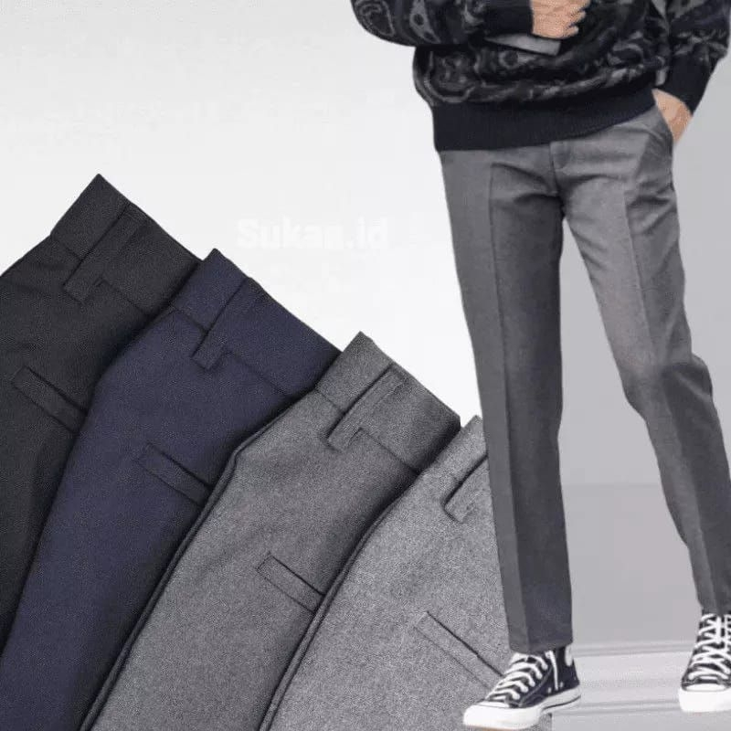 CELANA BAHAN | KERJA | FORMAL | KANTOR | PANJANG | HITAM | DASAR PRIA SLIMFIT