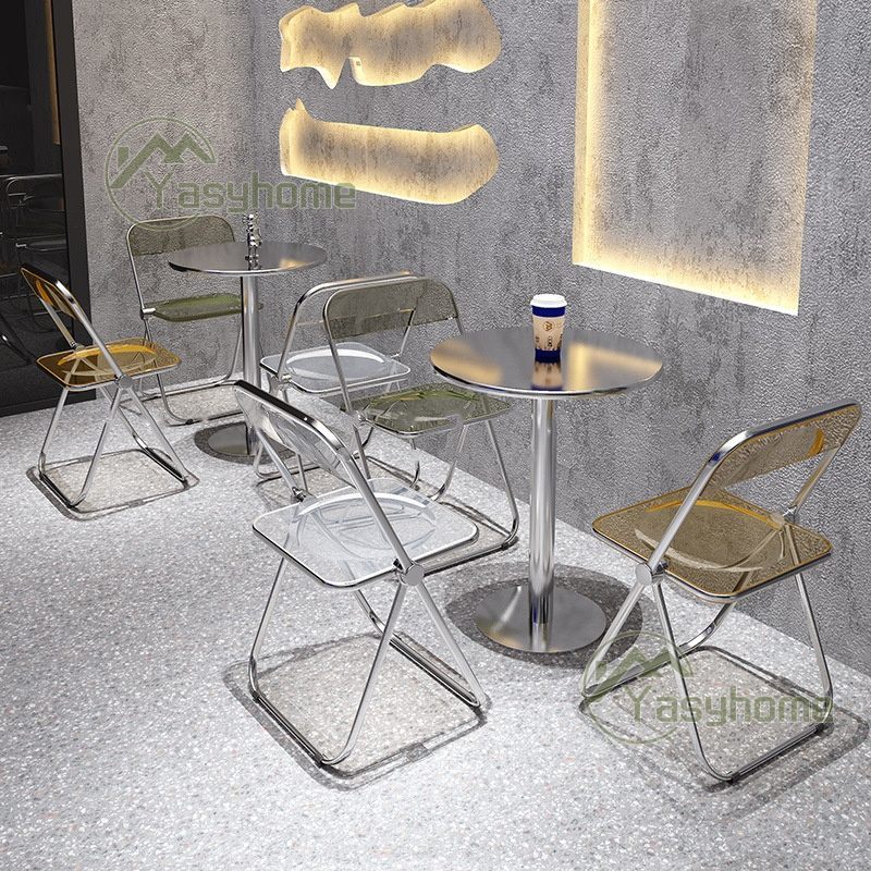 [5 Tahun Garansi&Meja Stainless]60cm Meja Kursi Kopi Kecil Kedai Kopi Gaya Industri Toko Teh Susu Meja Dan Kursi Baja Ta