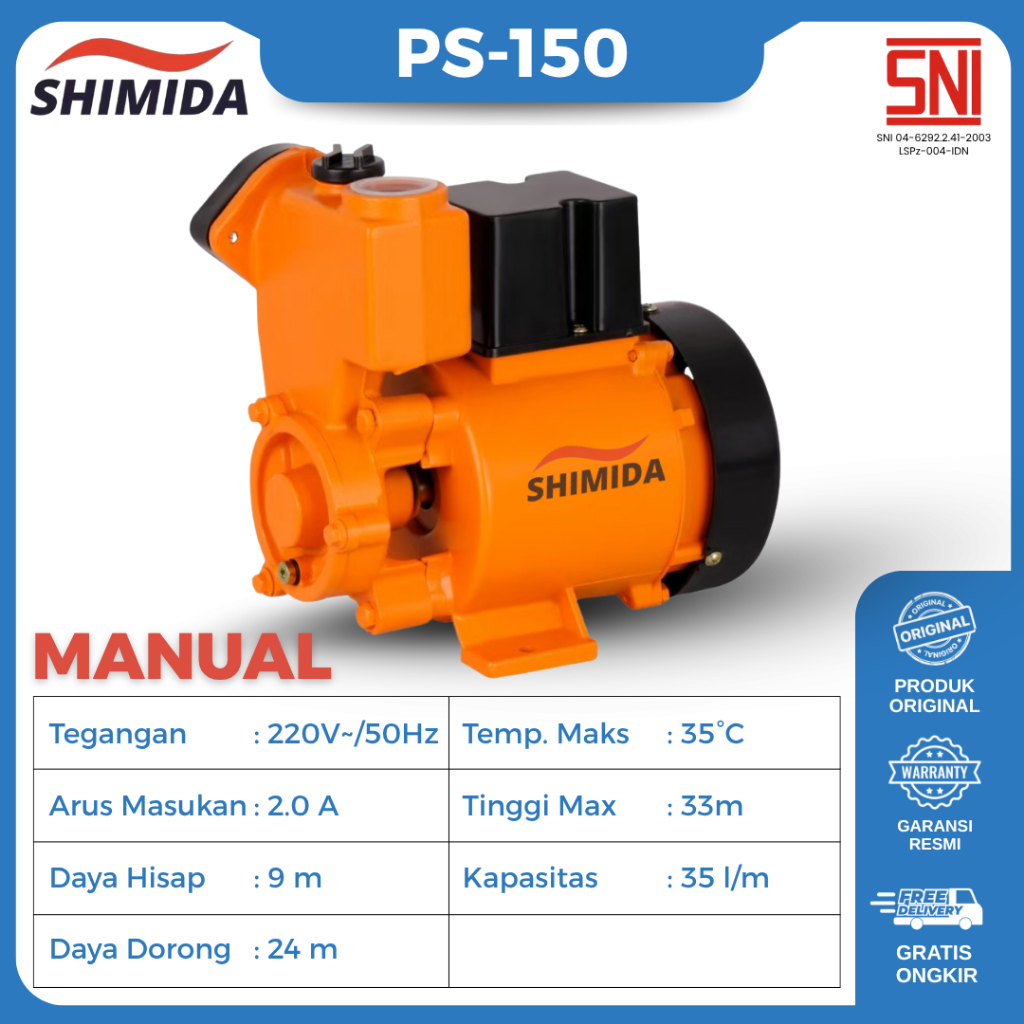 Shimida Booster Pump PS-220F Otomatis / PS-150 Manual JET PUMP Pompa Air Penguat Tekanan Air Rumah