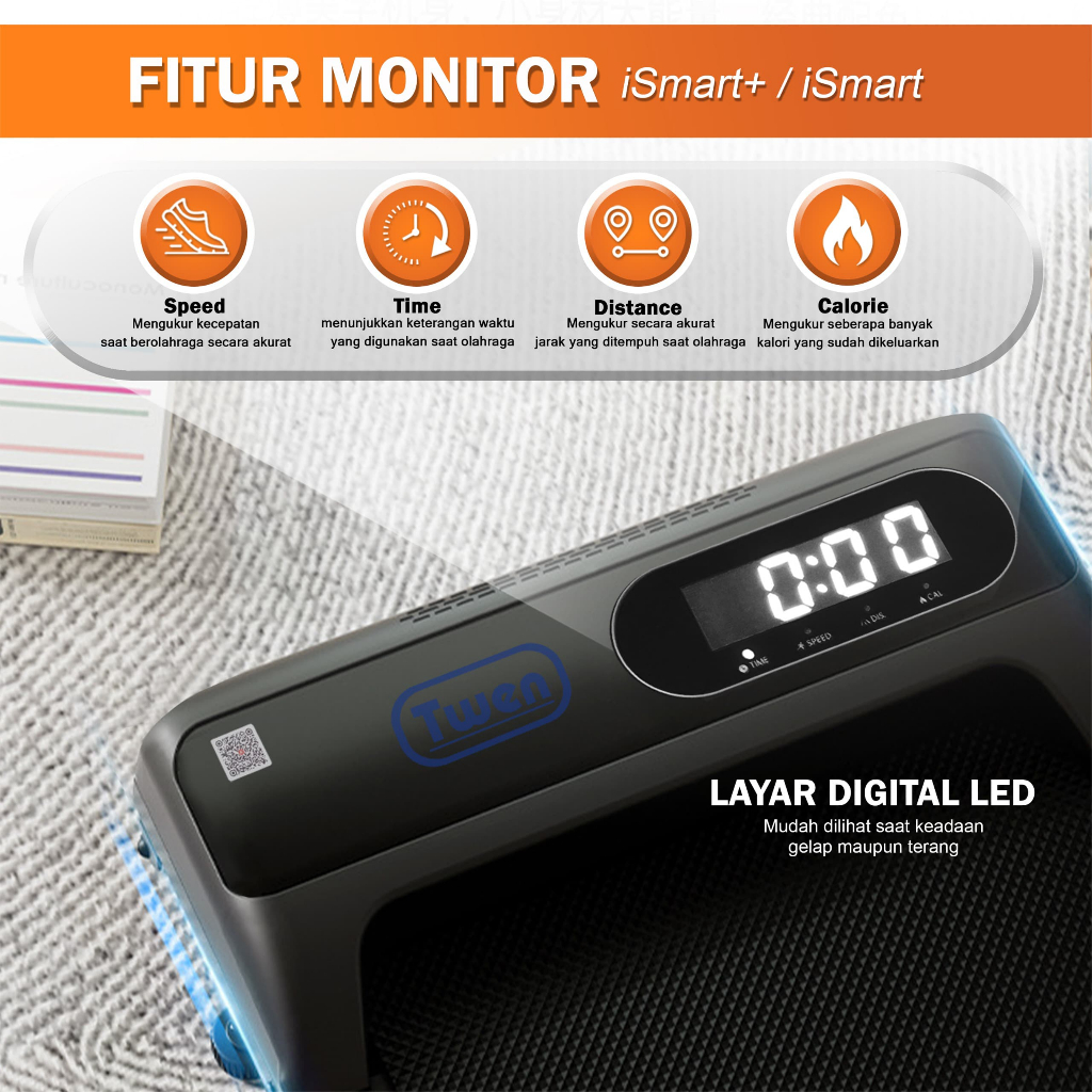 TWEN iSmart+ iSmart Plus Treadmill Elektrik Treadmill Portable Walking Pad Running Pad Alat Olahraga