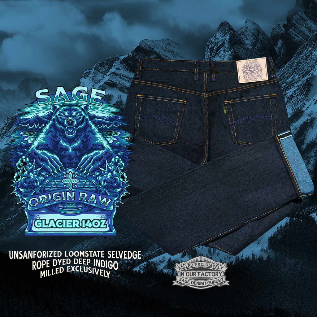 Sage Denim Origin Raw : Glacier 14oz Unsanforized Deep Indigo x Aquamarine