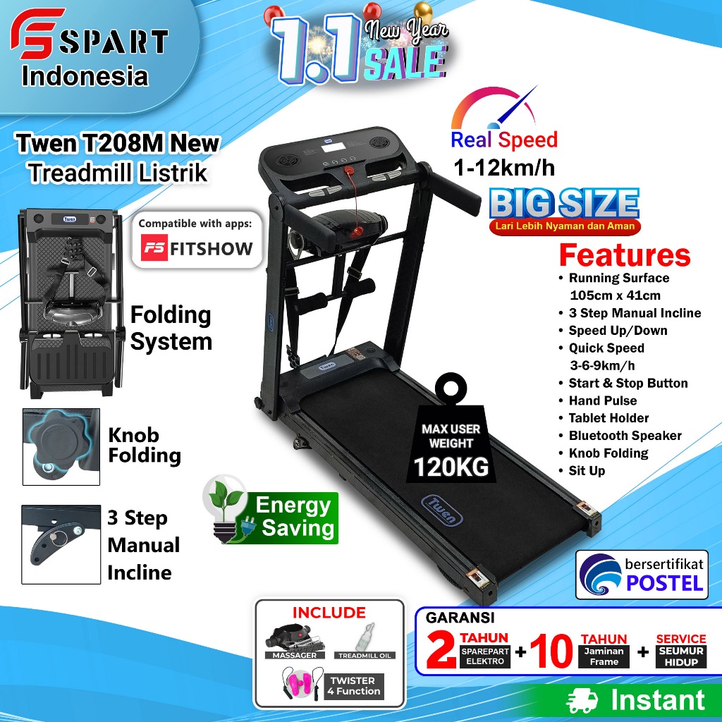 TWEN T205 New T208 New T205M New T208M New Treadmill Listrik Treadmill Portable Treadmill Multifungsi Treadmil Lipat Treadmill Electric Low Watt Alat Olahraga