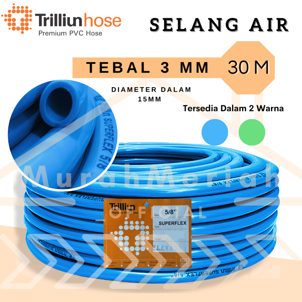 Paket Selang Air Trilliun Uk 5/8 Inchi 30 Meter + Semprotan ( Tebal 3Mm, Tebal 2Mm, Tebal 1Mm )