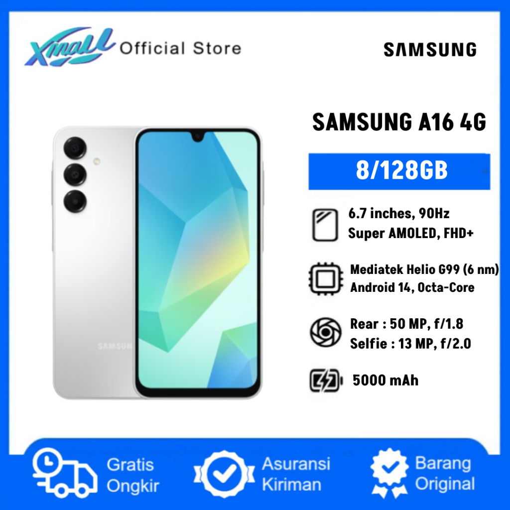 Samsung Galaxy A16 4G 8/128GB, 6,7 inches, 90Hz, Super AMOLED, FHD+, Android 14 Octa Core, 5000 mAh - Garansi Resmi
