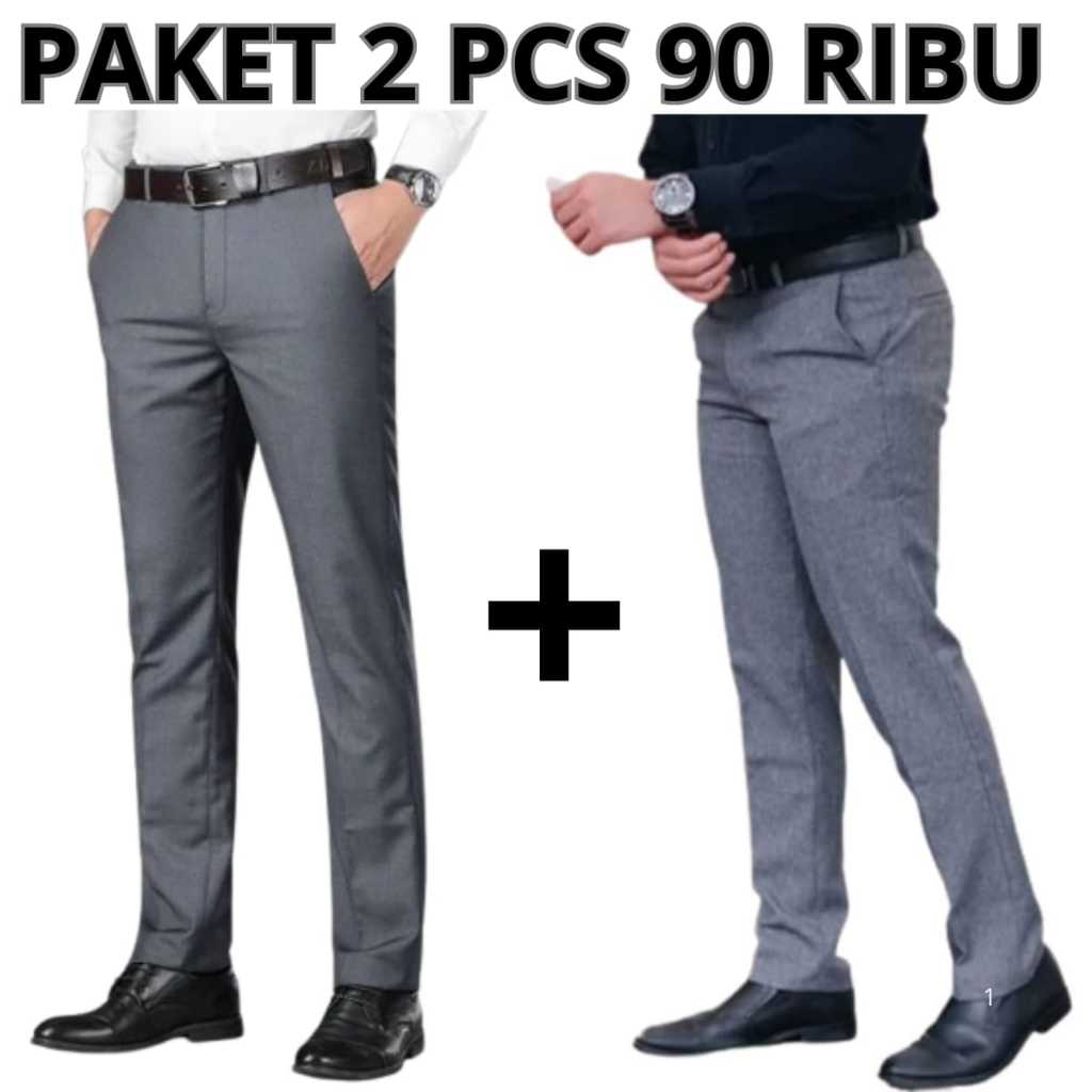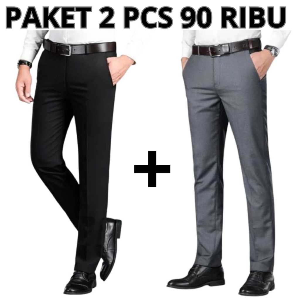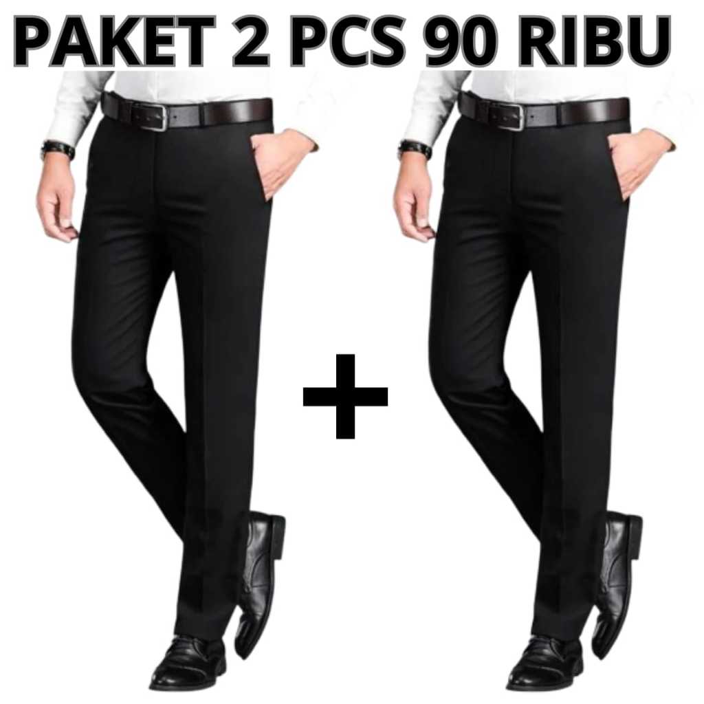 PROMO 2 Pcs Celana Slimfit Pria Hitam || Paket 2 Pcs Celana Kantor Formal Kerja Pria Bahan Dasar Kain Woll