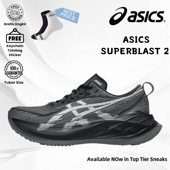 Sepatu Lari Asics, Warna Hitam Putih, Teknologi Ringan dan Penyangga Kaki, Cocok untuk Lari Jalan dan Latihan Gym