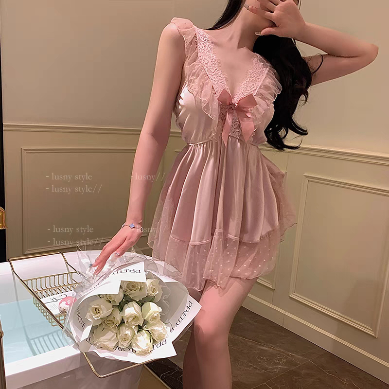 MSBOBO Sexy Lingerie Deep V Pita Kupu-Kupu Renda Gaun Tidur Wanita Ukuran Besar Piyama Transparan Kain Jarring