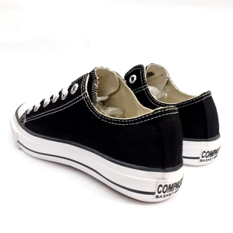 Sepatu Compass Lo Hattrick Ox Basket Ball ID Pria Wanita Black White Hitam Putih Low Pendek