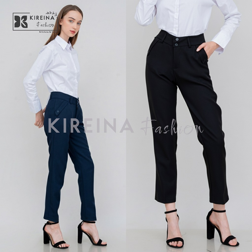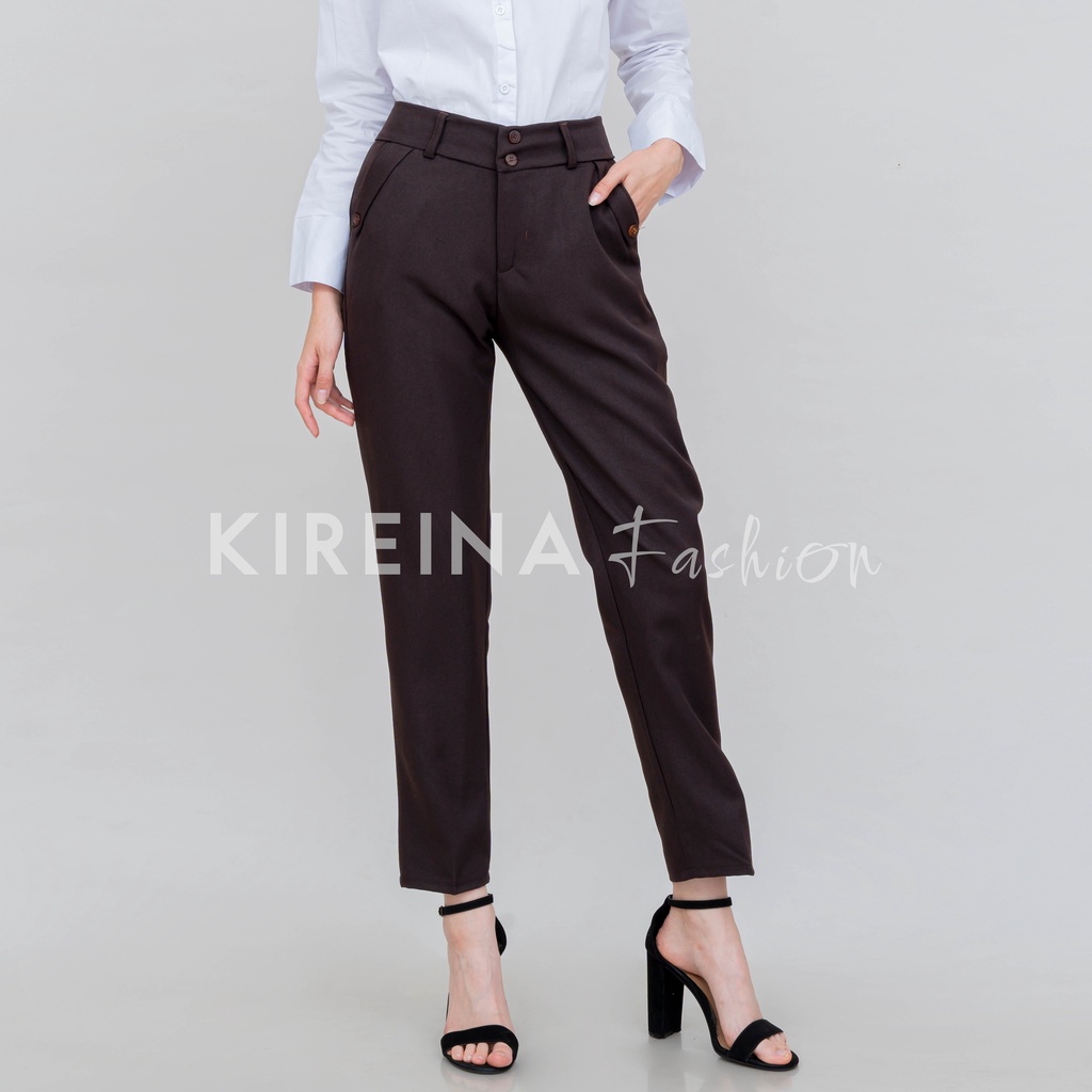 KIREINA - Celana Kerja Kantor Reguler Formal Pinggang Kancing Resleting Wanita