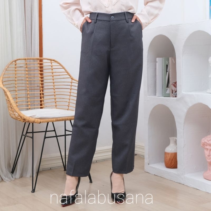 Celana Bahan Kerja Wanita Karet Belakang Haighwist Kantor Formal