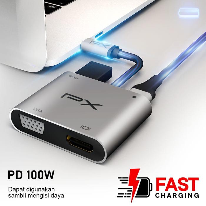 USB Type C 3.1 Hub Converter Adapter Laptop Macbook to HDMI VGA USB 4 in 1 PX UCH14 - Space Grey