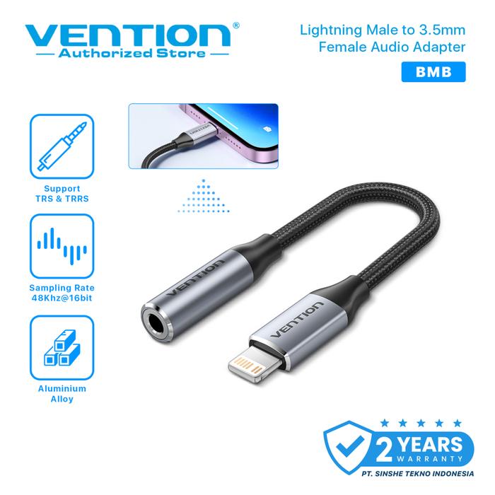 Vention Lightning Male to 3.5mm Aux Female Audio Adapter Converter Jack iPhone Gray Wire Metal - BMB 0.1 Meter