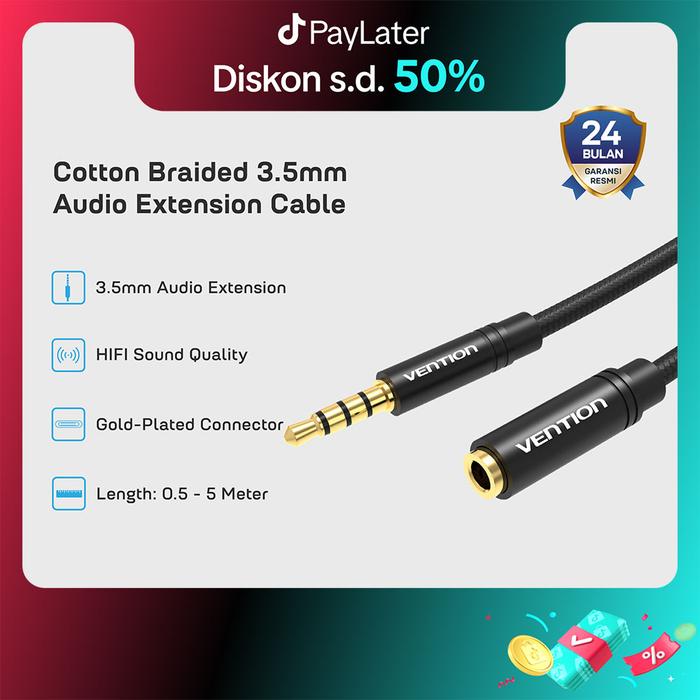 Vention Cable Jack 3.5mm Audio Extension Cable 1M 2M 3M - BHB - BLACK 5M