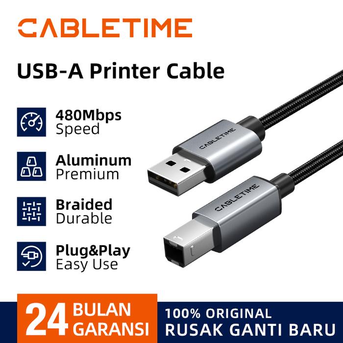 CABLETIME Kabel Data USB 2.0 Type A Male to B Male Scanner Printer - 0.5 Meter