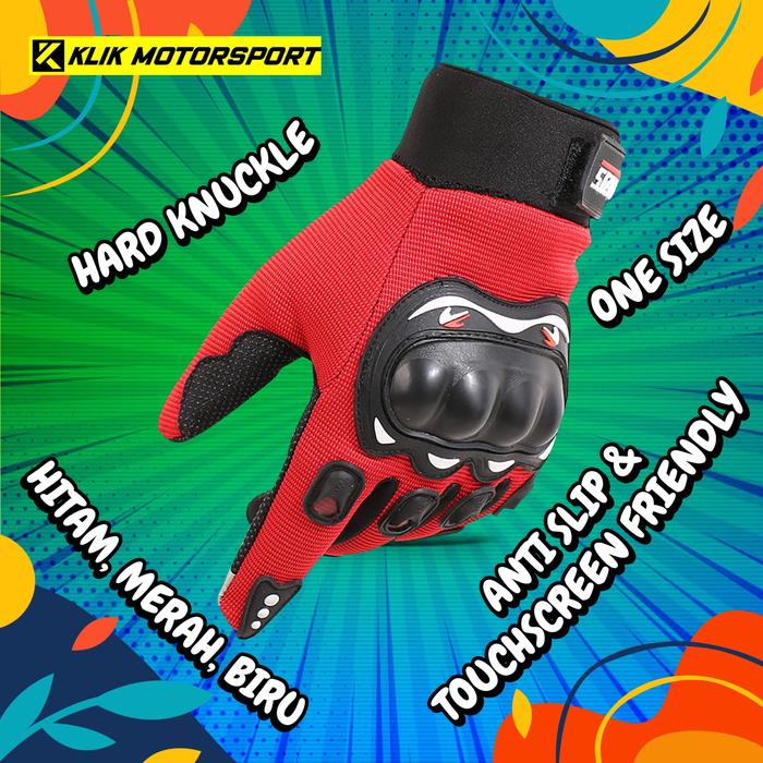 Sarung Tangan Motor Batok Anti Slip Sensitif Touchscreen All Size - 3 Warna - MERAH