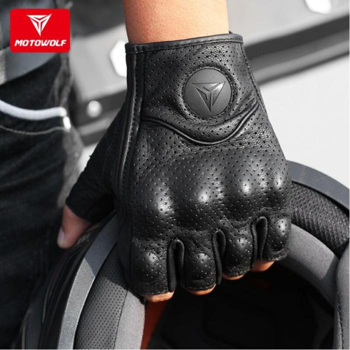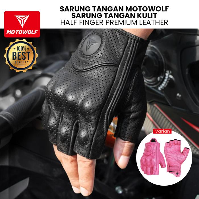Sarung Tangan Motowolf Sarung Tangan Kulit Half Finger Premium Leather - Black M