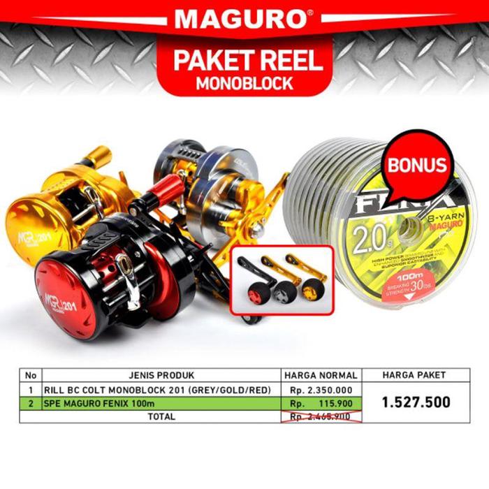 Paket Murah Reel Maguro Colt Monoblock FREE Senar PE Maguro Fenix