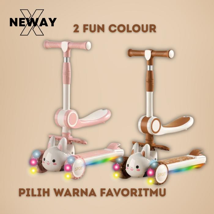 NewayX Skuter Mainan Anak Kelinci 2 in 1 Scooter Lipat Duduk Roda Tiga Lampu Musik Rem Rabbit Toys