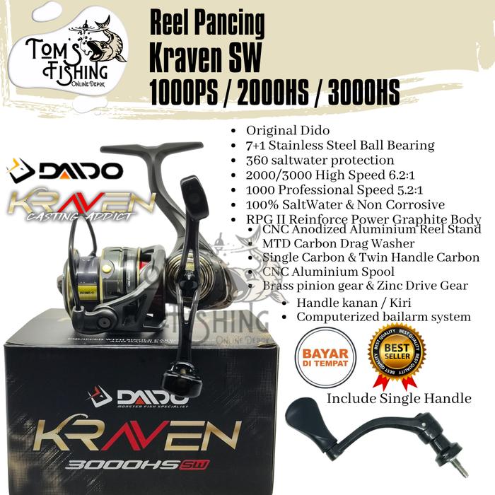 Reel Pancing DAIDO KRAVEN SW 1000 PS - 3000 HS 6.2:1 Waterproof 7.0 (7+1 Bearing) Murah - Toms