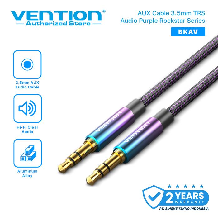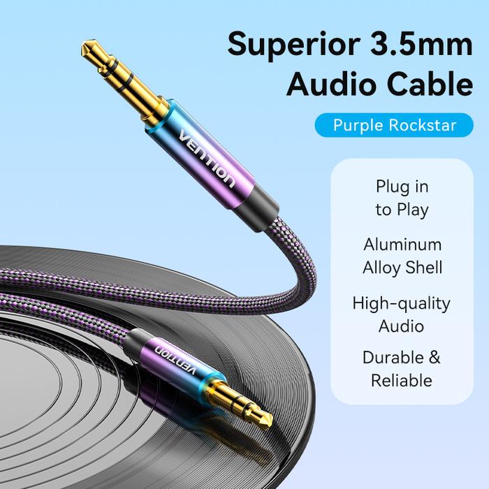 Vention Kabel Aux 3.5mm Male to Male TRS Audio Cotton Braided Purple Rockstar Series - BKA 5 Meter